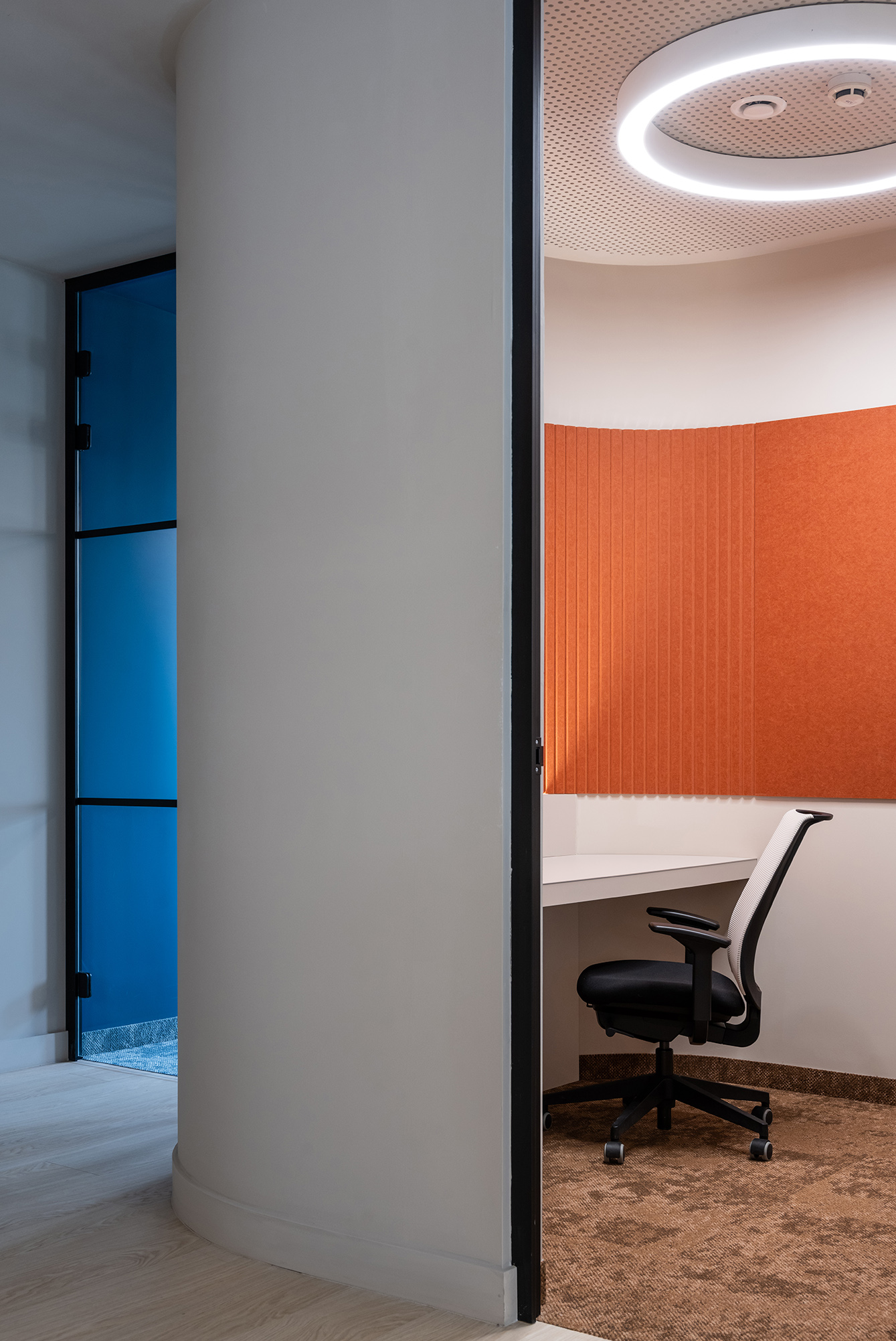Modernist Layout: The layout draws inspiration from the modernist aesthetics of New Belgrade, characterized by quick and efficient circulation avenues and functional blocks. Rounded edges, reminiscent of refined Yugoslavian modernism from the 50s, weave through the space, adorning walls and gathering spots with inviting, curved forms. The result is a workplace that echoes the city's urban blocks, promoting both productivity and aesthetic appeal.